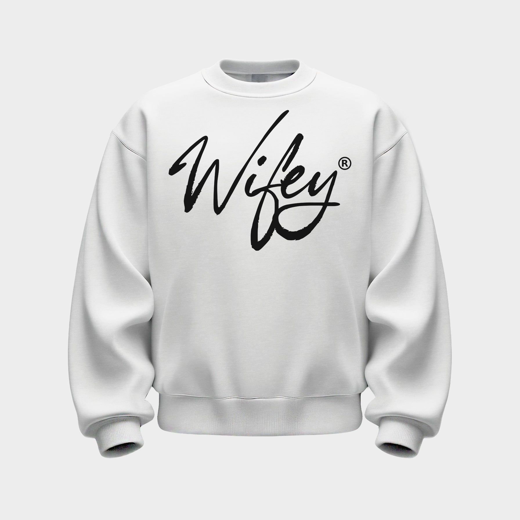 WHITE BRUSHED WIFEY SCRIPT CREWNECK SWEATSHIRT